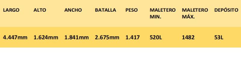 El maletero de este modelo nos proporciona 520 litros de capacidad manteniendo la fila de asientos traseros habilitada, mientras que si abatimos los asientos su capacidad se amplía hasta conseguir los 1.482 litros, convirtiéndolo en un maletero sobresaliente.
