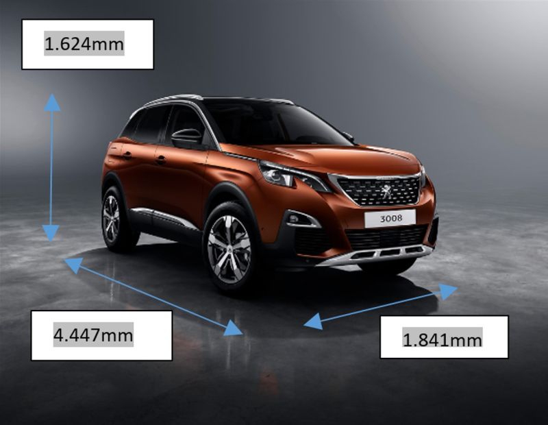 El Peugeot 3008 tiene una longitud de 4.447 mm que lo posiciona por encima de la medida media de los vehículos de su segmento, que se encuentra en los 4.380mm.