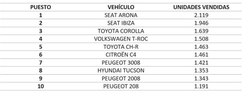Seat, ha recuperado de nuevo el liderato en este ranking de nuevo gracias a las ventas conseguidas con el Seat Arona y la entrada en el pódium del Seat Ibiza.